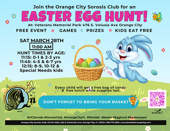 Hop into spring with our thrilling Easter Egg Hunt! Held the Saturday before Easter at Veterans Memorial Park in Orange City, this event is packed with fun. Kids can snap a photo with the Easter Bunny, play country games, and enjoy a free hot dog, chips, and a drink. Watch the Easter Bunny arrive in style on a fire truck to kick off the hunt for over 6,000 eggs! To ensure everyone has a fair chance, the hunt is divided into age categories, including a handicap-accessible area. Each age group has two special prize-winning eggs. Don’t miss out on this egg-citing event!
